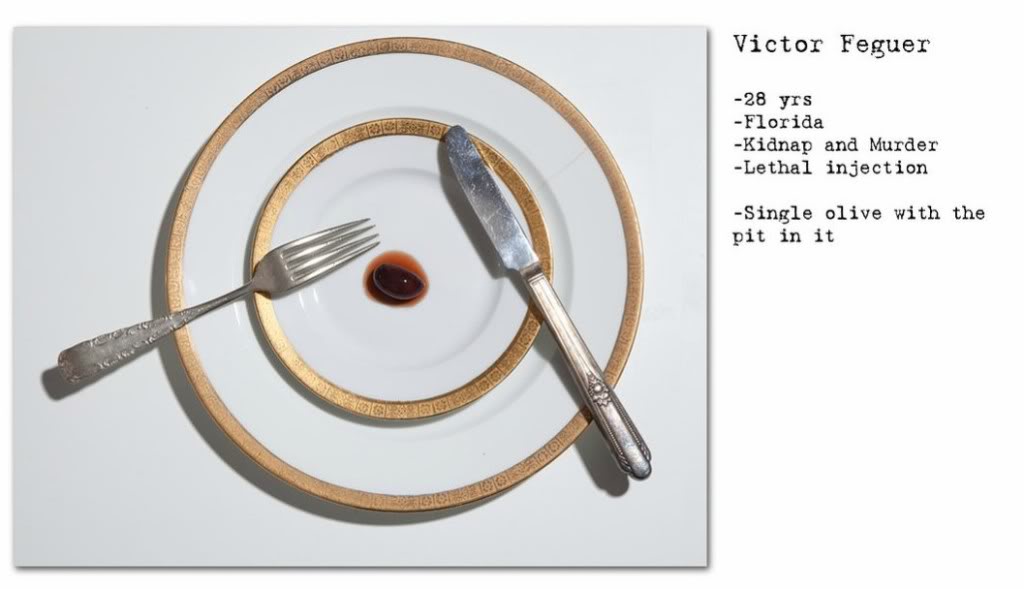 大部分的死刑犯都选择了汉堡炸鸡,而有一个死刑犯选择了带核的橄榄,他希望自己被执行死刑后,尸体能带着这枚种子在泥土里长出象征和平的橄榄树。
